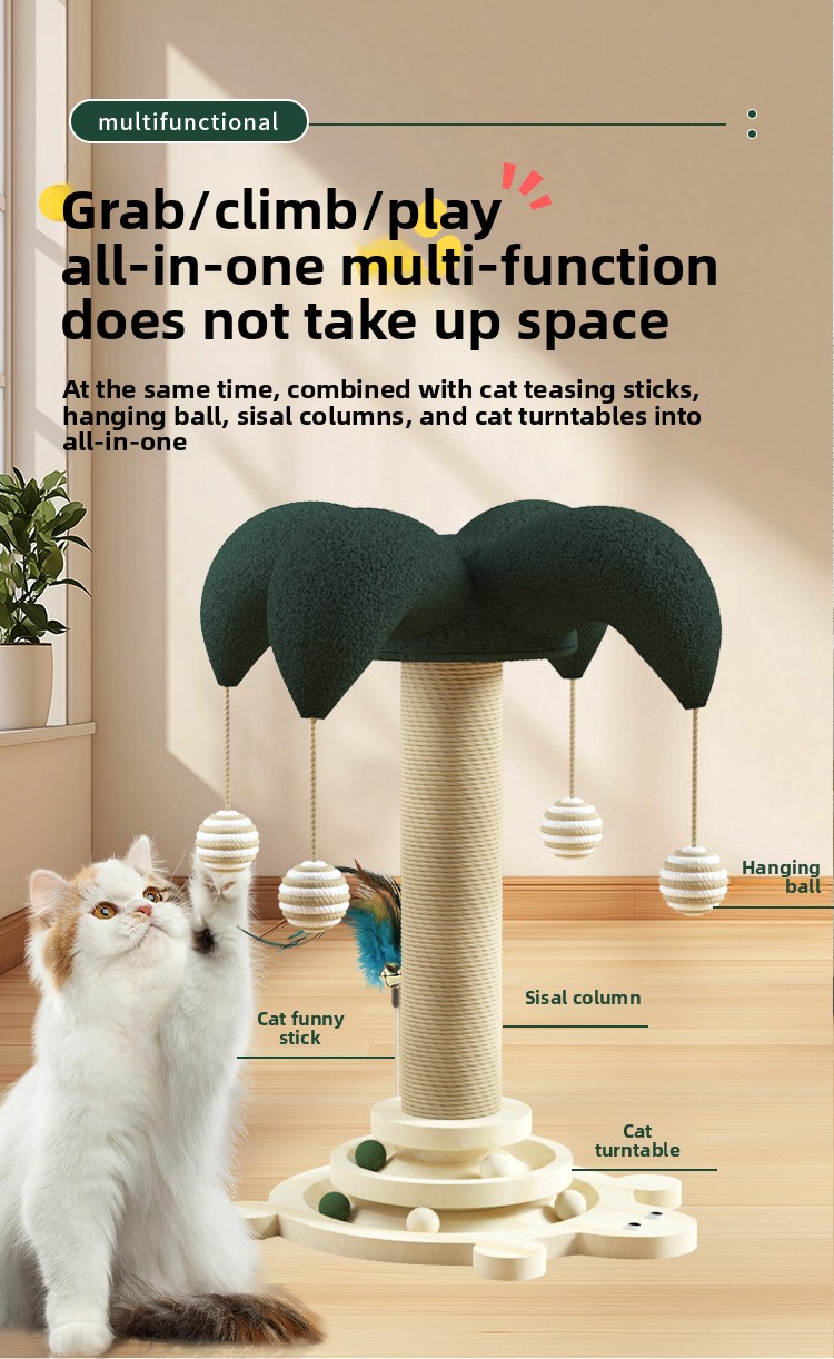 Multi-functional Design: Combines a turntable, scratching post, and climbing frame for cats.